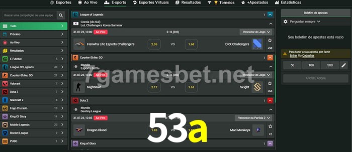A aposta 53a oferece aos jogadores a experiência mais conveniente de apostas em eSports!